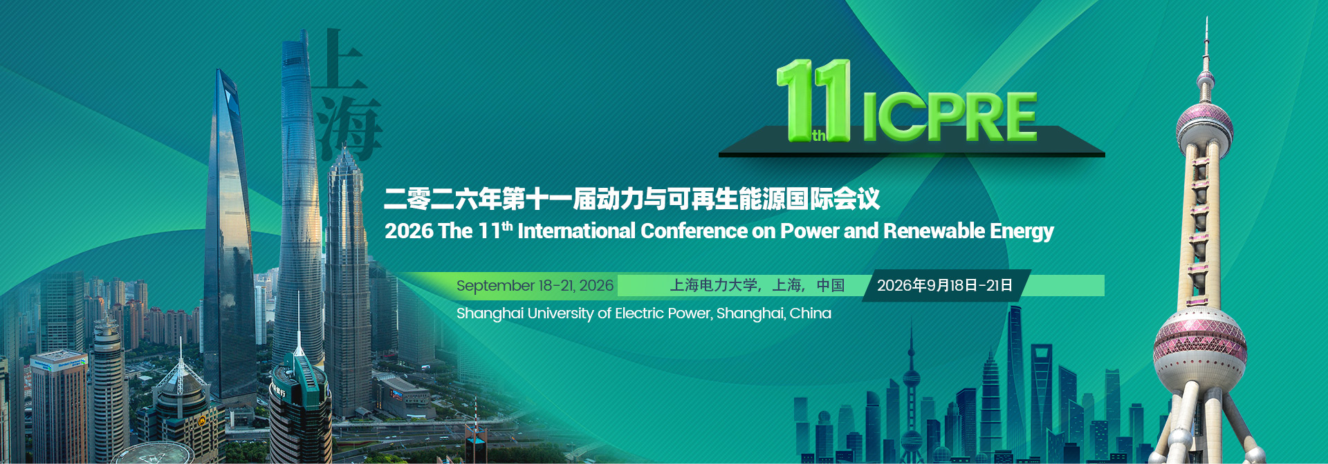 After the success of 2025, The 11th International Conference on Power and Renewable Energy, the annual premier power and renewable energy development meeting, will be held from September 18-21, 2026 in Shanghai, China. ICPRE 2026 is co-sponsored by Shanghai University of Electric Power, Shanghai Jiao Tong University, Shanghai University, hosted by Shanghai University..